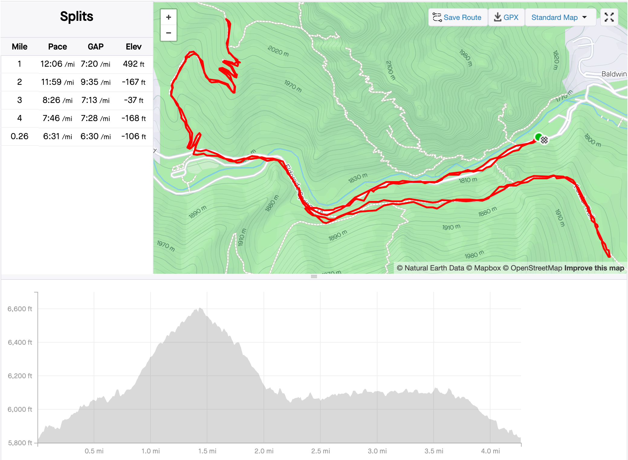 A description of the Rattlesnake Ramble course for the even years, meaning this is the course in 2024, 2026, etc. The race starts at the west end of the lower parking lot and runs up the main road through the canyon to nearly the west end before turning up the Eldorado Trail. The course runs this trail to the park boundary and then turns around and runs back down to the road and then eastwards back toward the start. When you get to the Fowler Trail, the race follows that trail to the eastern border of the park and then turns around and runs back to the road. Finally, the course retraces the initial road section, downhill to the start/finish. This course is 4.25 miles long and has 800 of climbing.